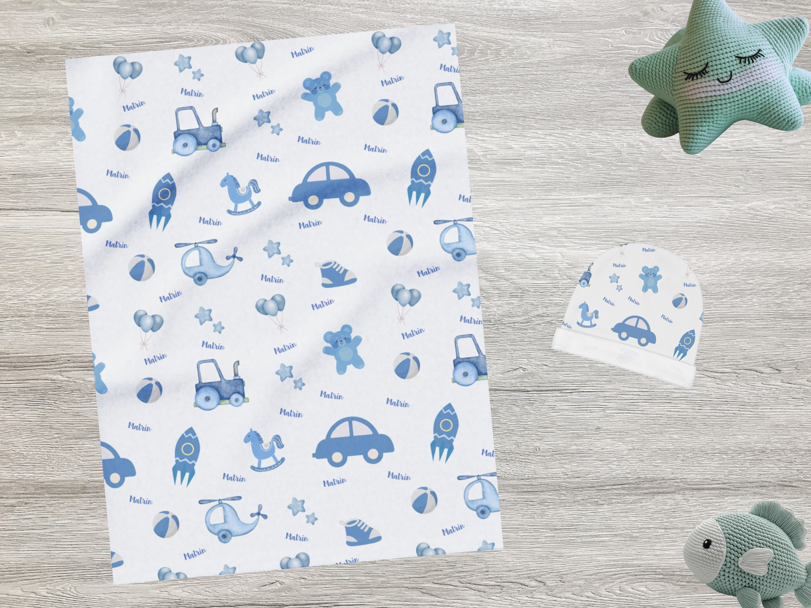 Personalized Baby Boy Blankets with Flowers, Animals & Lace Borders