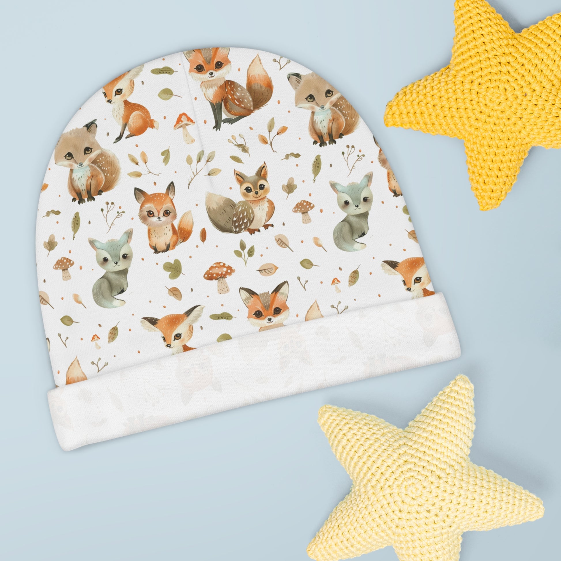 .: NB! Please note these beanies are pre-constructed. Solid background and full-bleed pattern maybe not cover 100% of the creasing area along the seams of the beanie.