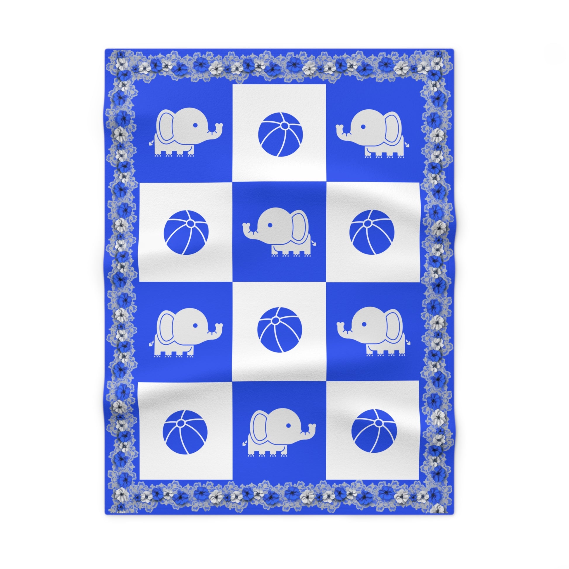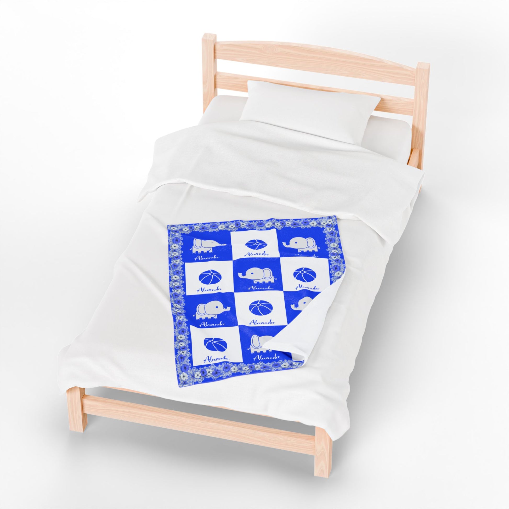 Personalized Name Baby Boy Blanket, Soft Fleece, Custom Nursery Blanket,elephant and ball pattern