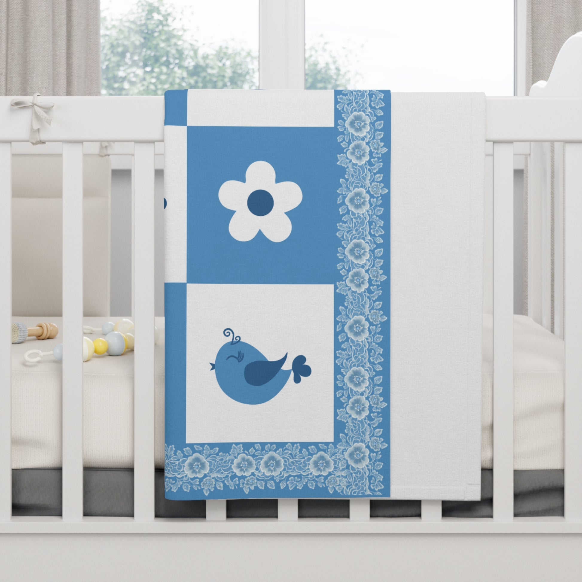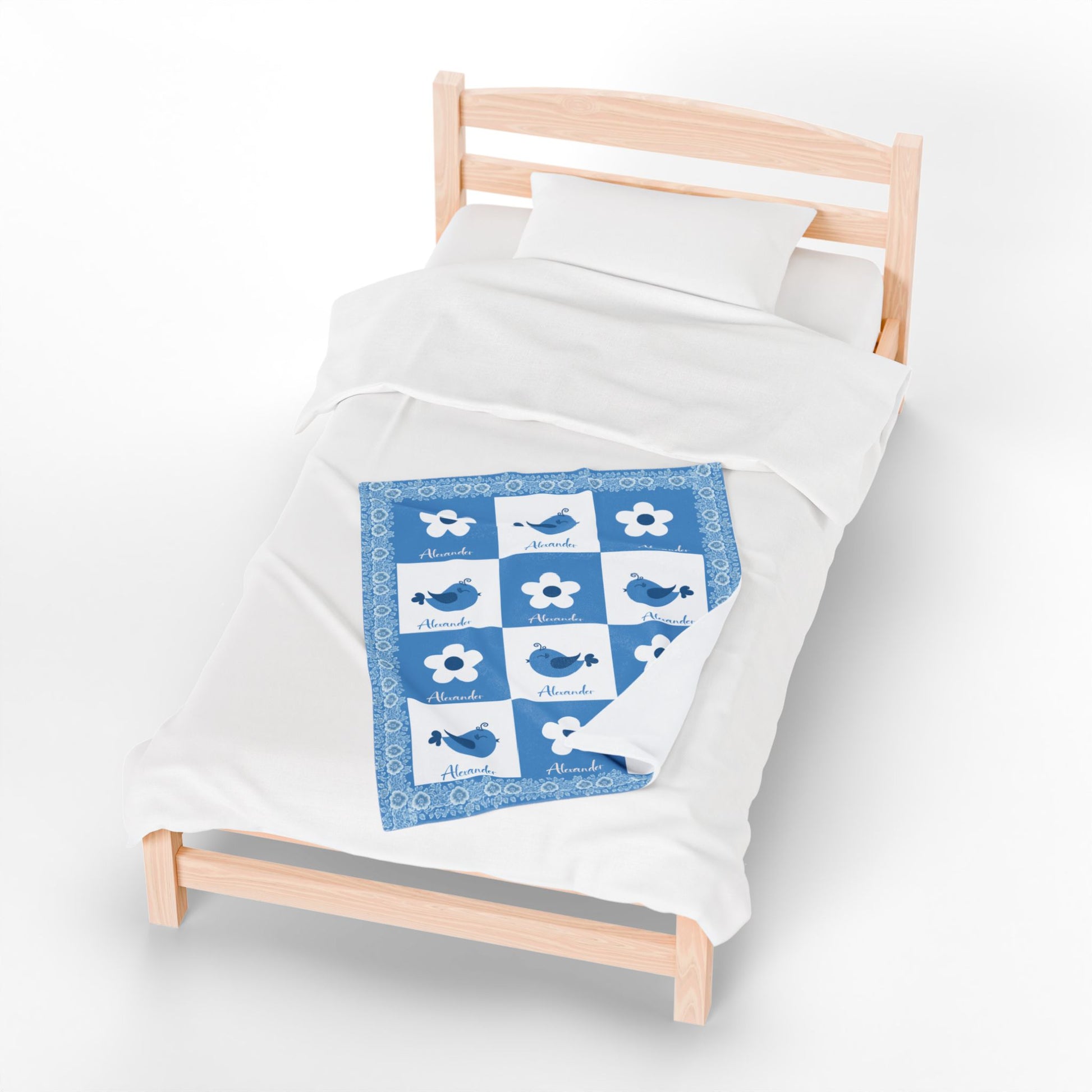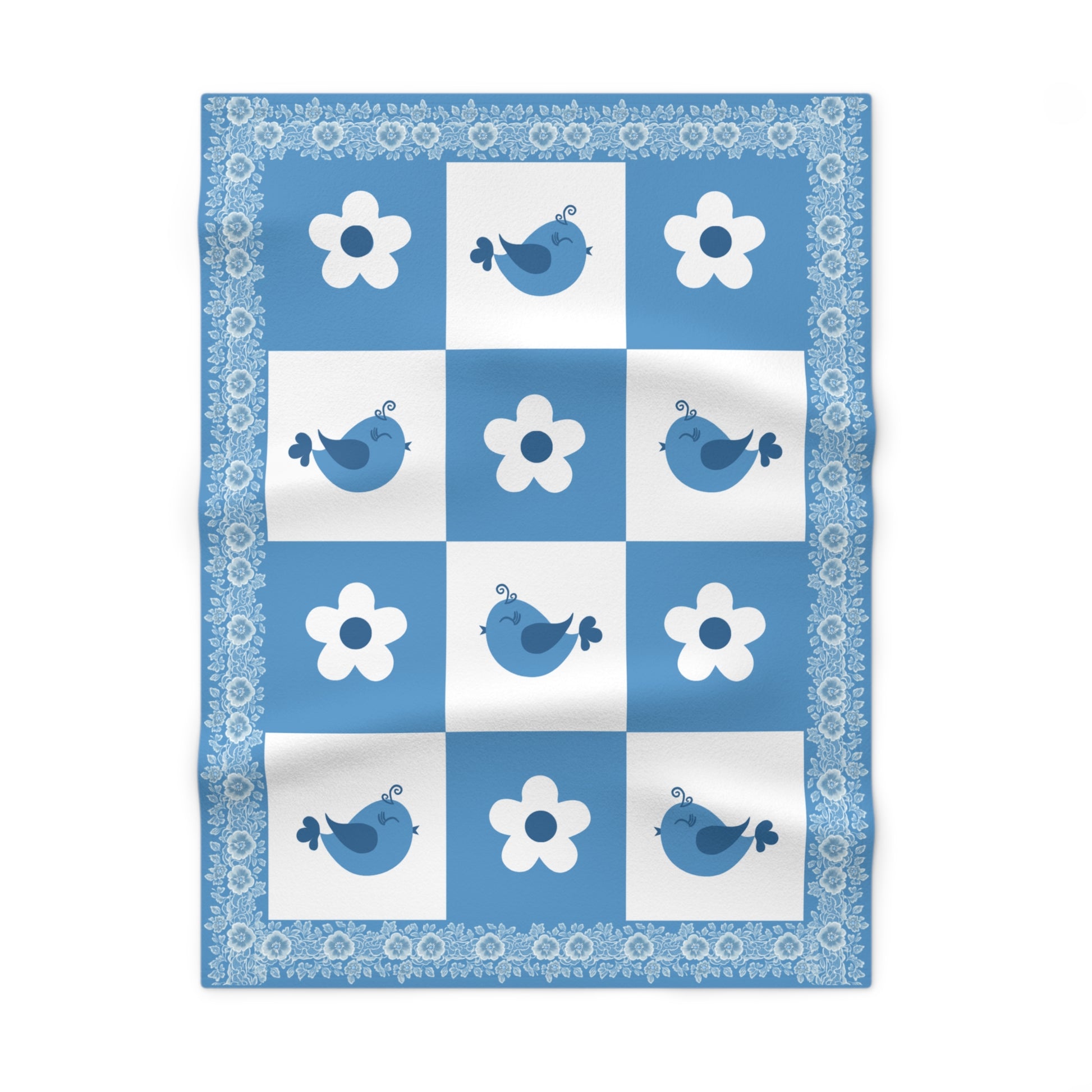 Fleece is king when it comes to fluffy softness. As such, the personalized fleece baby blanket is a cuddle necessity. 30” by 40”, this 100% polyester rectangle supports printing on one side. These items are preconstructed before printing, so exact symmetry is not guaranteed. Due to the microfiber construction, small colored dots may pop up. A cold wash cycle and a tumble dry, however, should reduce this possibility.