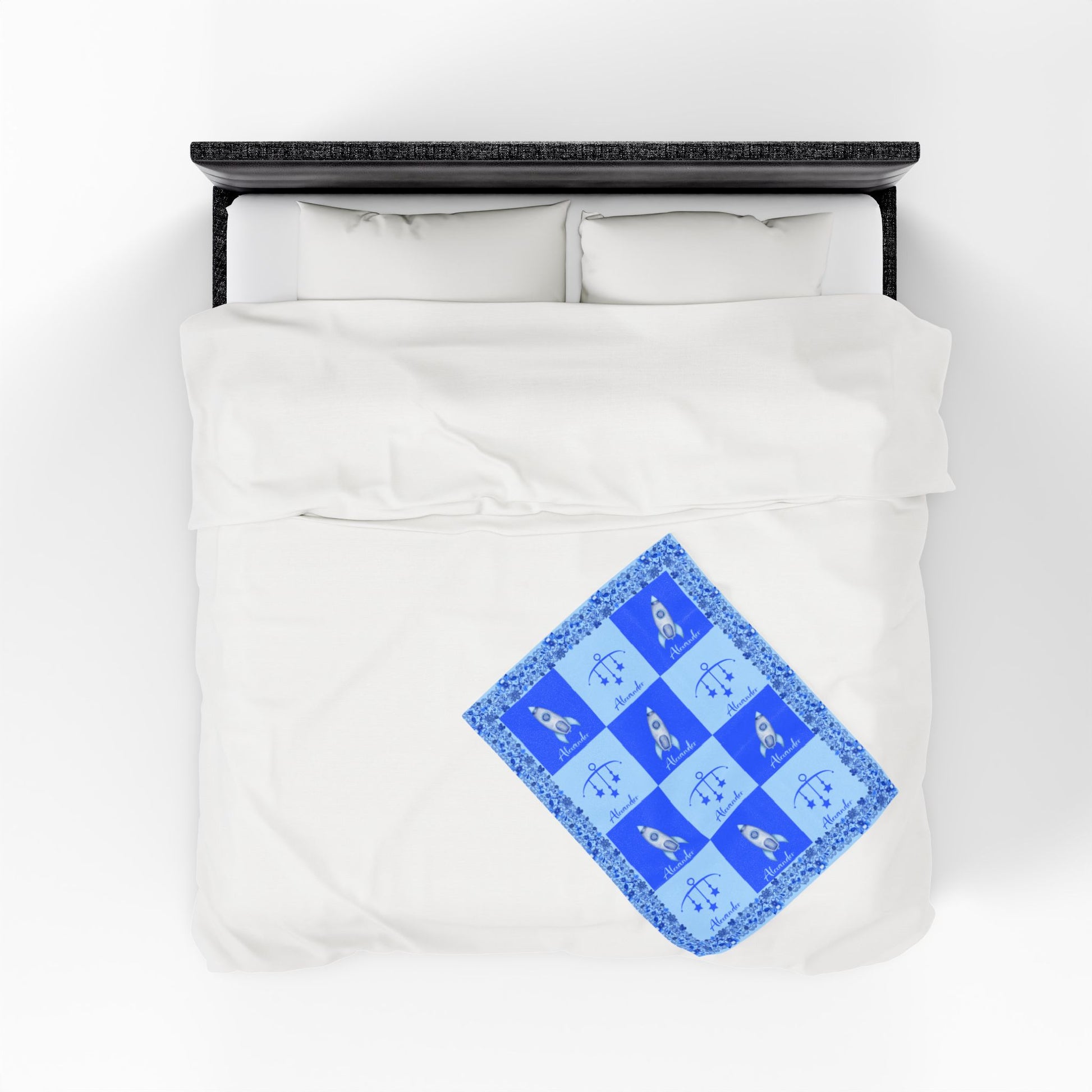 Fleece is king when it comes to fluffy softness. As such, the personalized fleece baby blanket is a cuddle necessity. 30” by 40”, this 100% polyester rectangle supports printing on one side. These items are preconstructed before printing, so exact symmetry is not guaranteed. Due to the microfiber construction, small colored dots may pop up. A cold wash cycle and a tumble dry, however, should reduce this possibility.