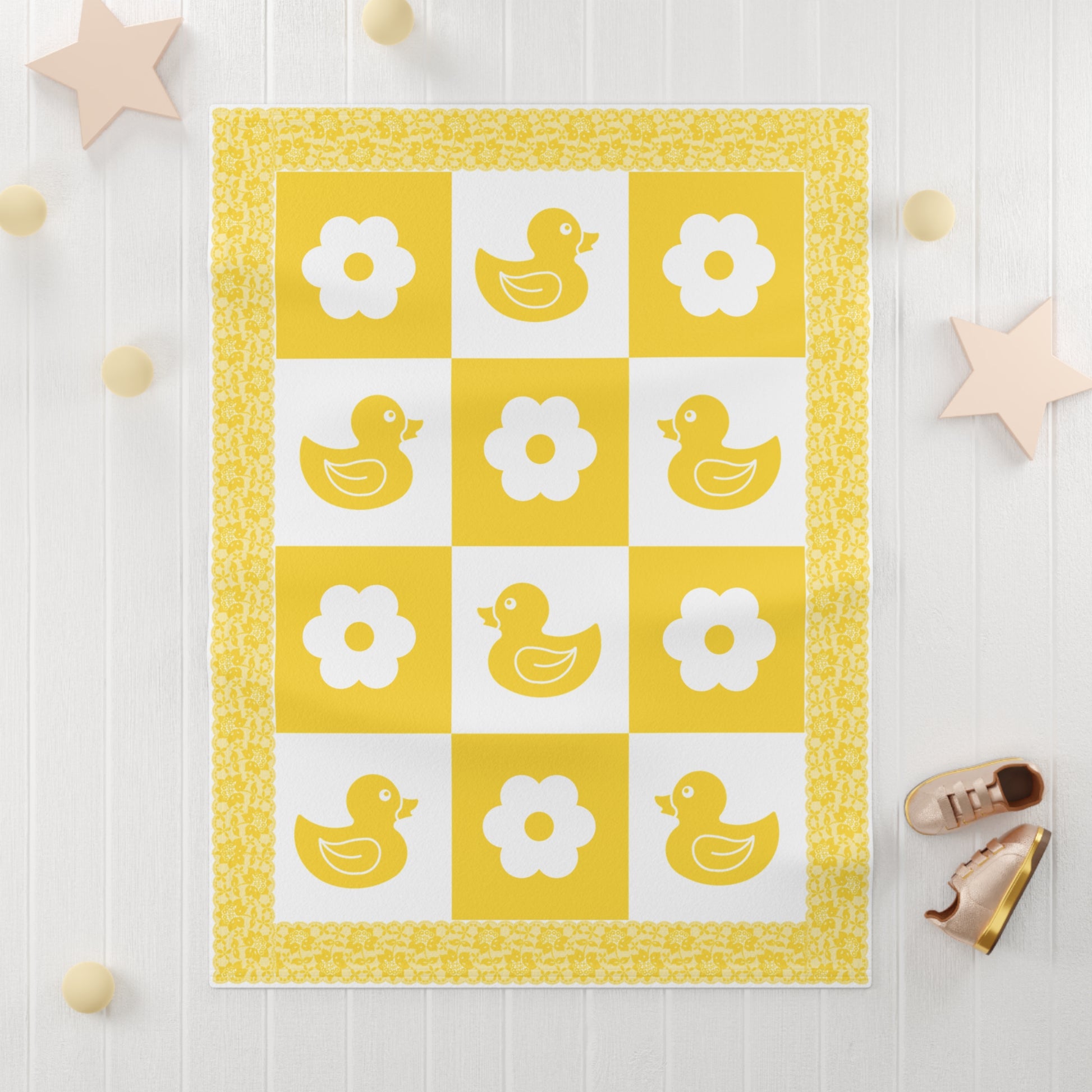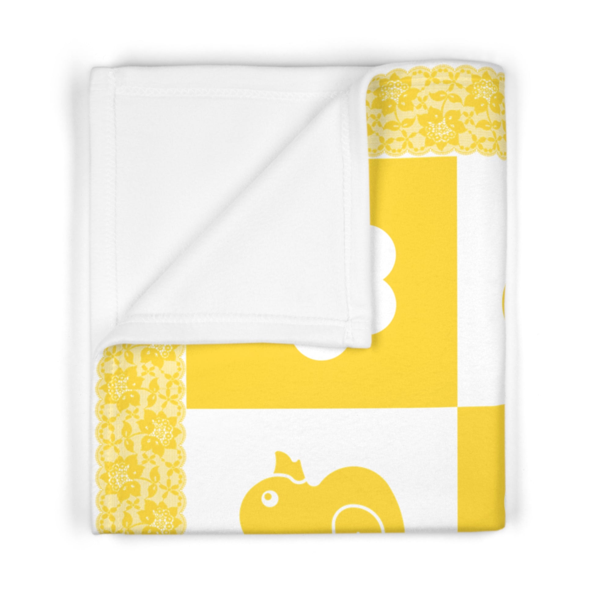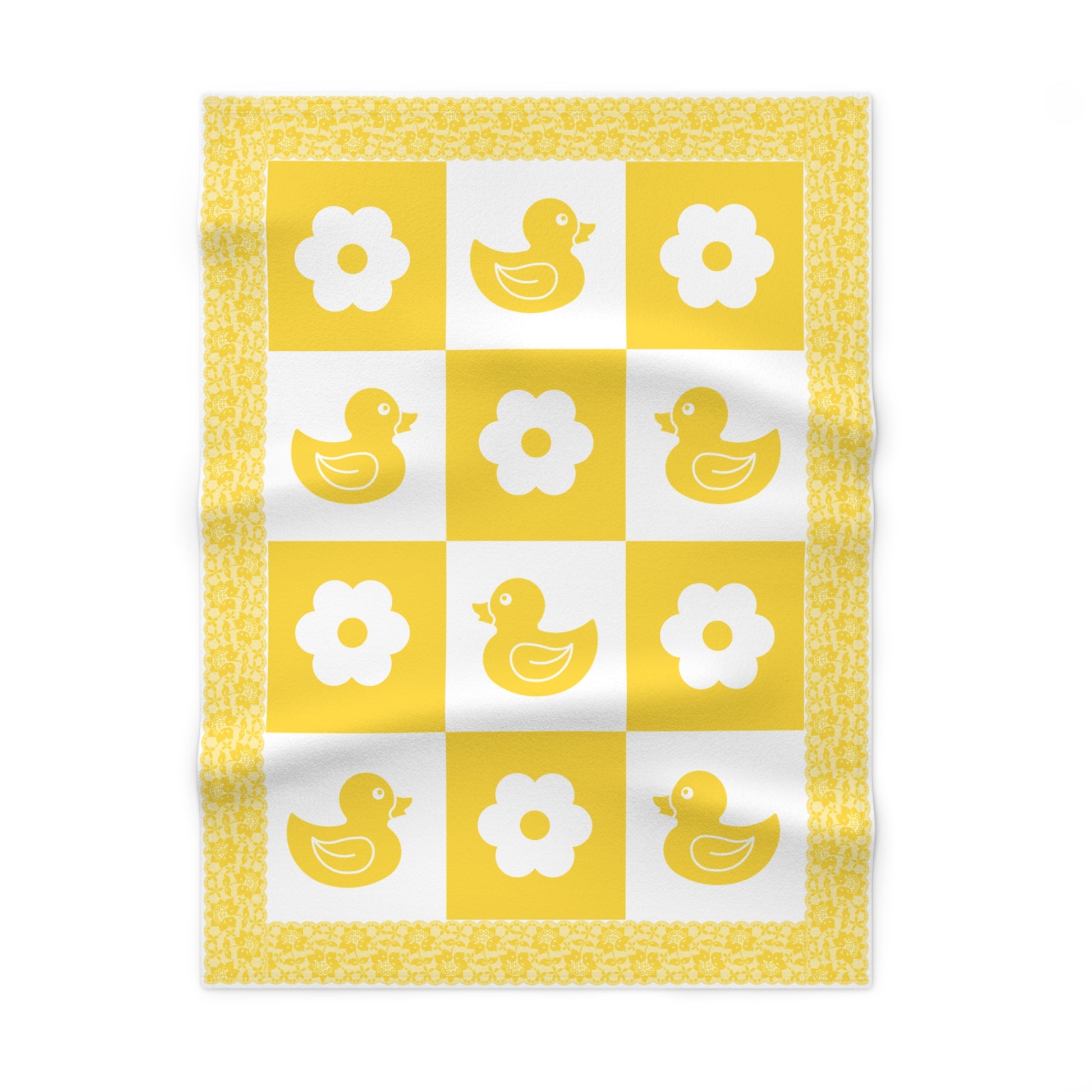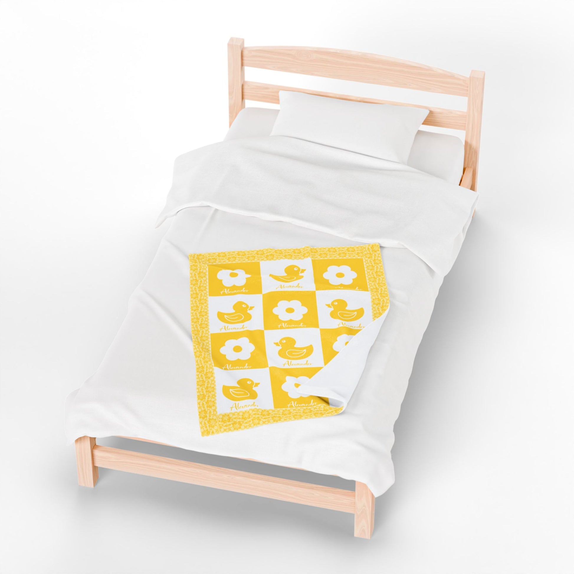 Fleece is king when it comes to fluffy softness. As such, the personalized fleece baby blanket is a cuddle necessity. 30” by 40”, this 100% polyester rectangle supports printing on one side. These items are preconstructed before printing, so exact symmetry is not guaranteed. Due to the microfiber construction, small colored dots may pop up. A cold wash cycle and a tumble dry, however, should reduce this possibility.