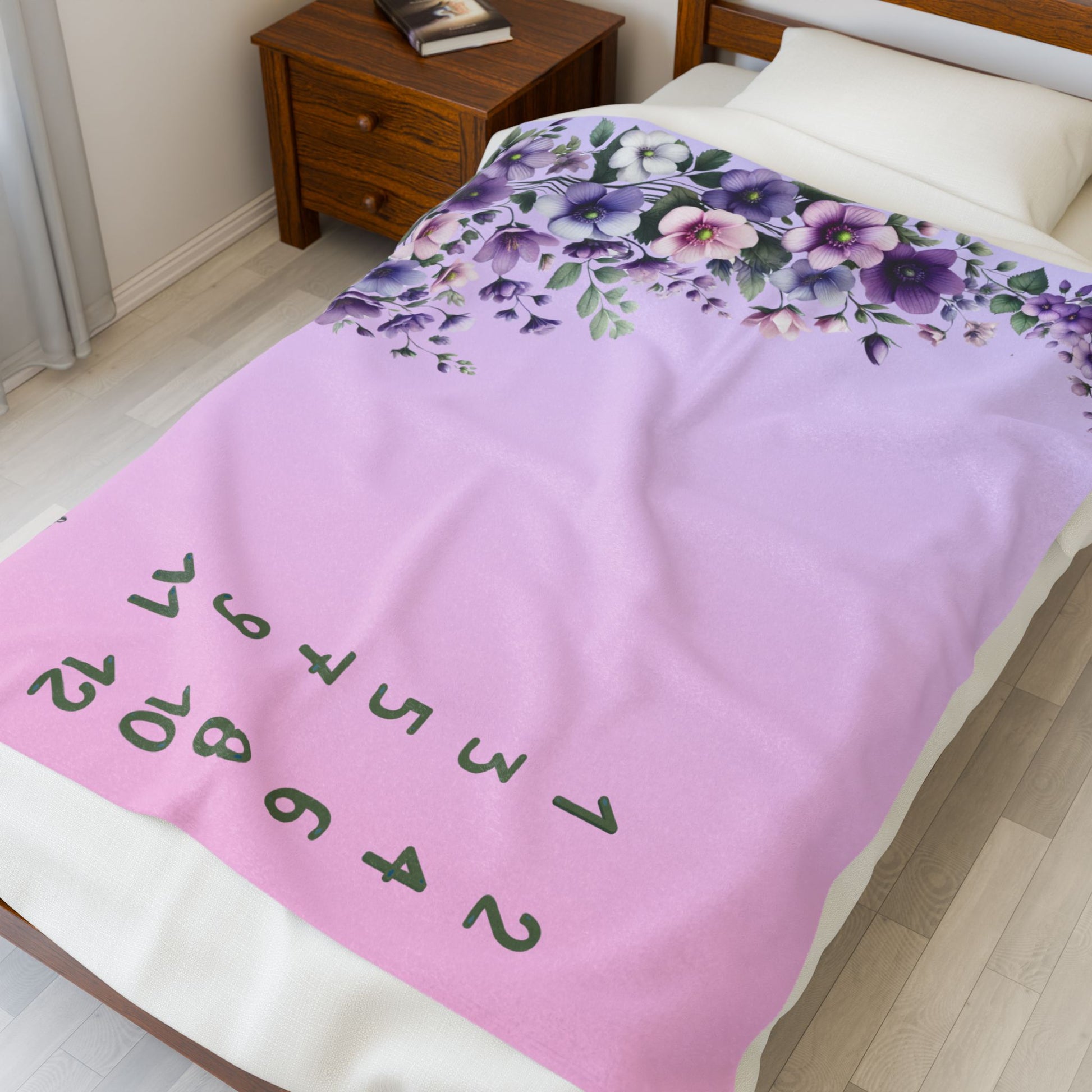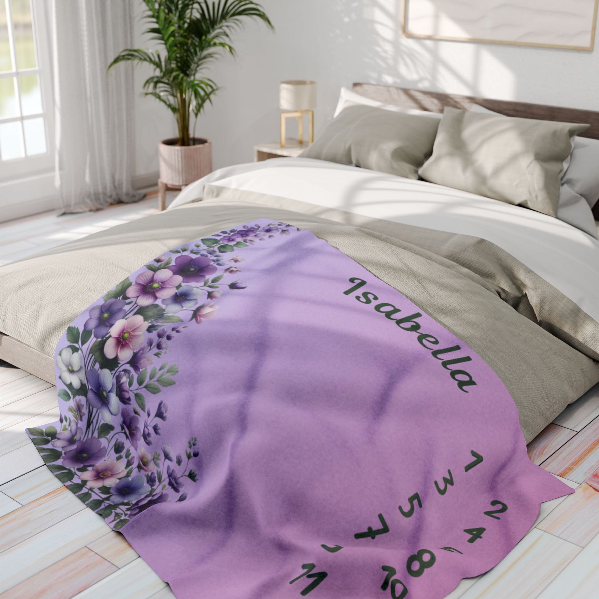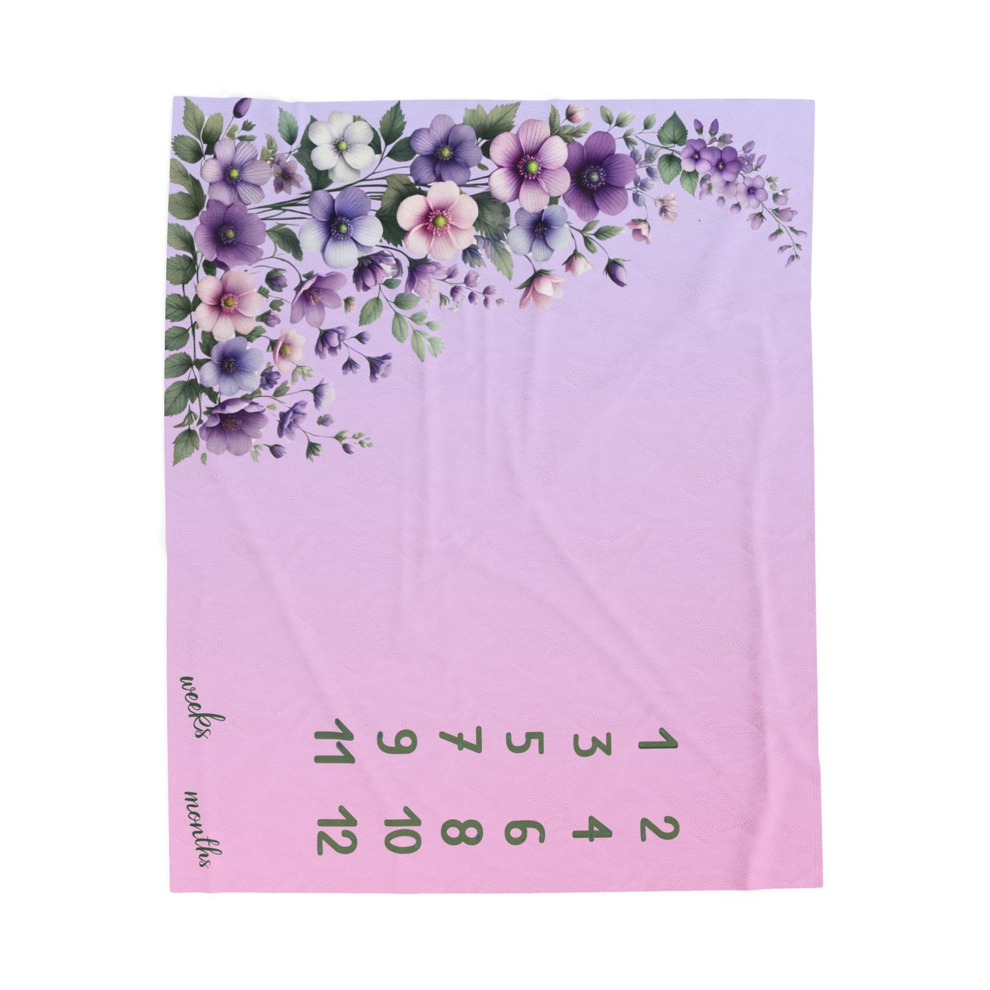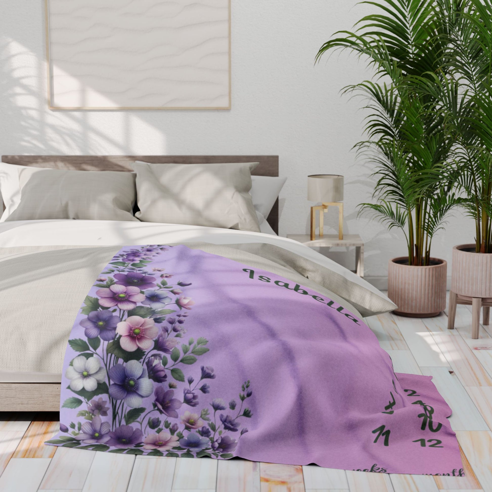 Personalized Floral Milestone Baby Blanket – Soft Velveteen Plush Fleece for Newborn Girls