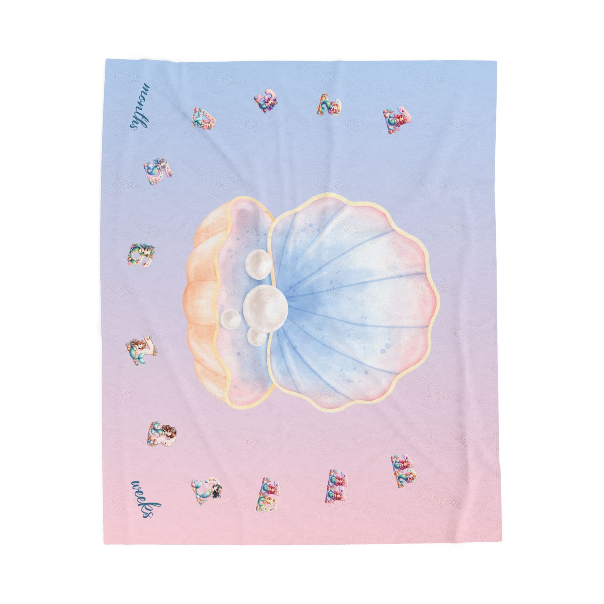 Personalized Seashell Milestone Baby Blanket – Soft Velveteen Plush Fleece
