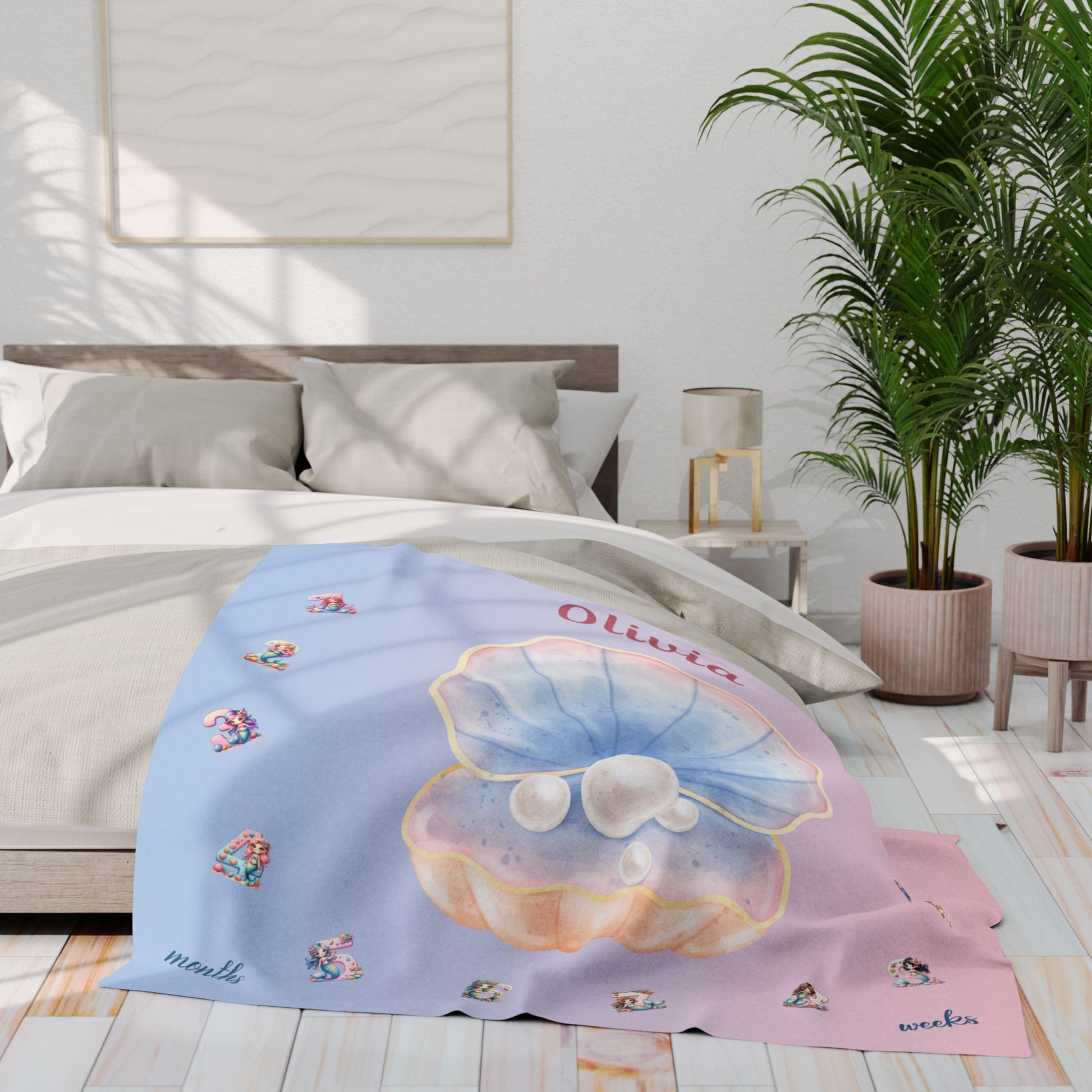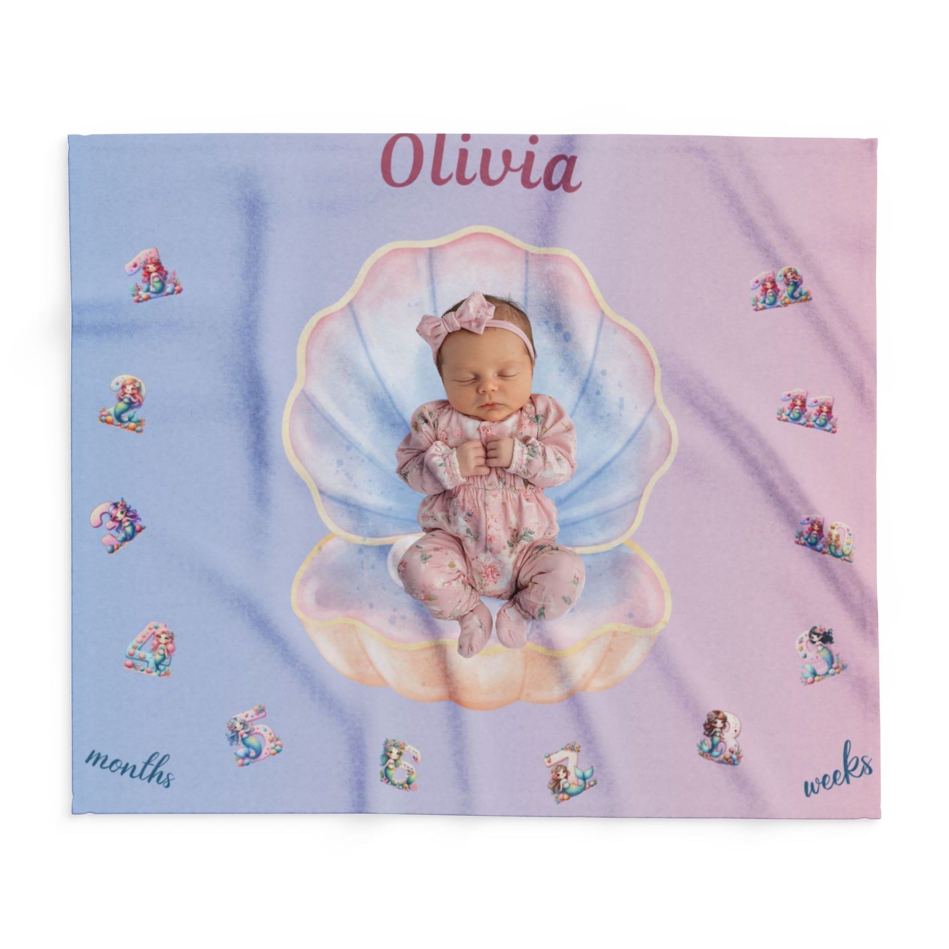 Capture every magical moment with our Personalized Seashell Milestone Baby Blanket, designed for parents who want to celebrate their baby’s growth in the sweetest way! This dreamy blanket features a delicate seashell and pearl design in soft pastel pink and blue tones — perfect for monthly milestone photos and nursery decor.