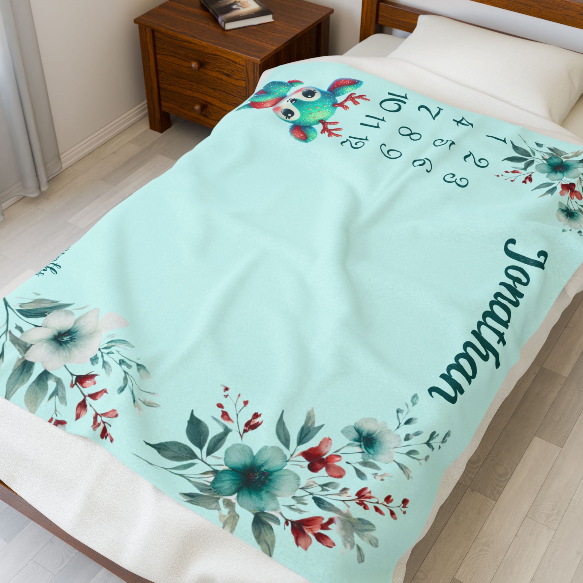 Perfect for monthly milestone photos, baby shower gifts, or cozy nursery decor, this personalized baby boy blanket helps you document every stage of your baby’s precious first year in style.Create a cozy and warm atmosphere at home with this plush velveteen blanket. It is soft to touch and perfect for any home. Customize with a one-sided print to add your personal touch or create a gift for your friends and family. Available in three sizes: 30x40", 50x60"