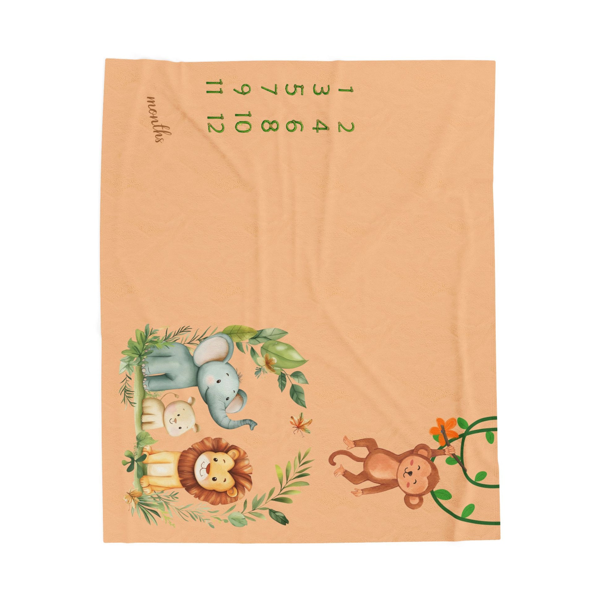 Personalized Jungle Safari Milestone Baby Boy Blanket – Velveteen Plush