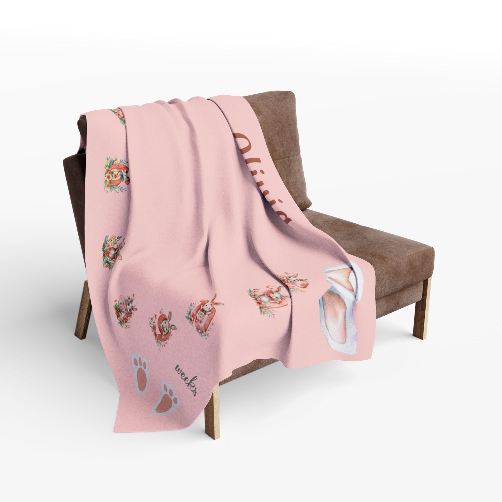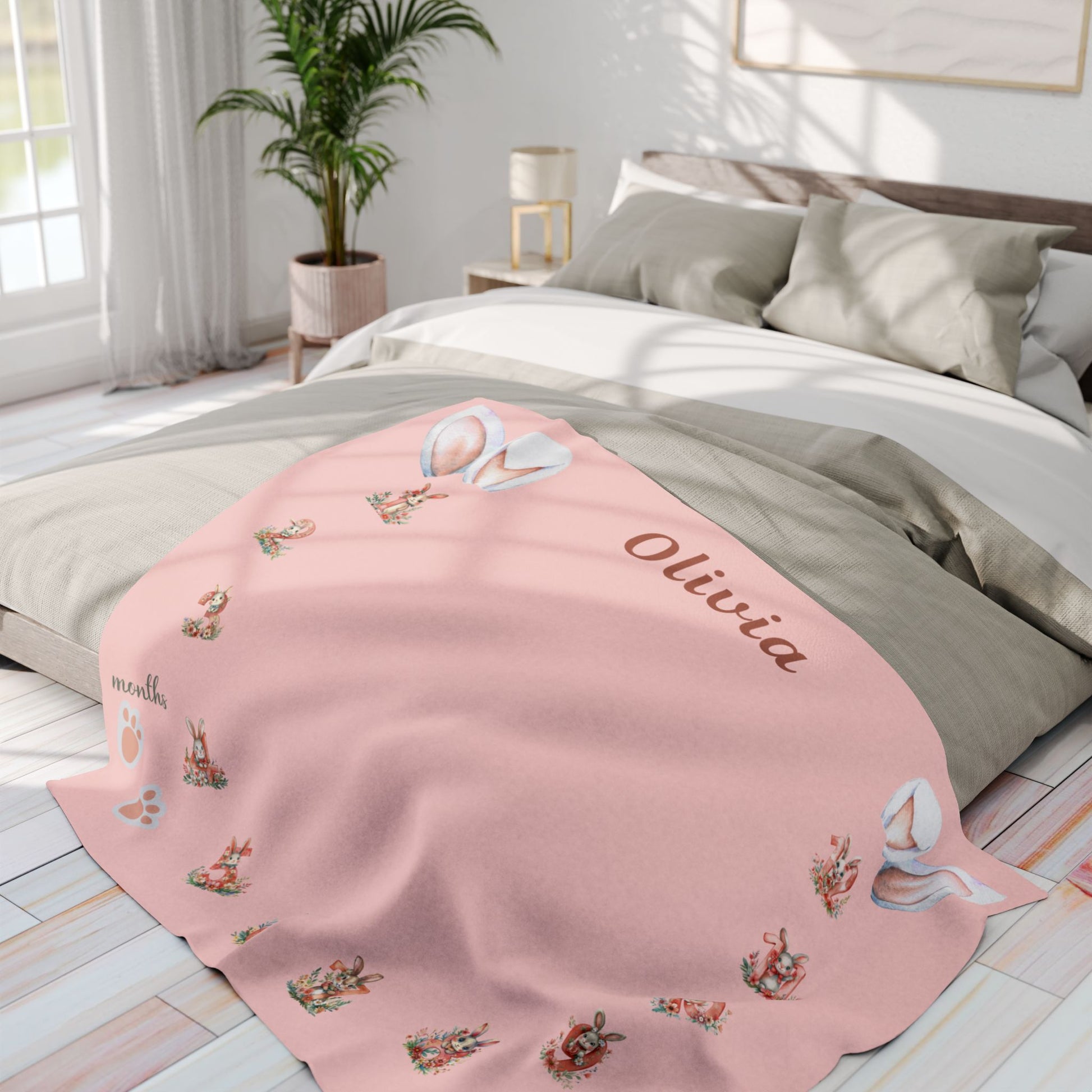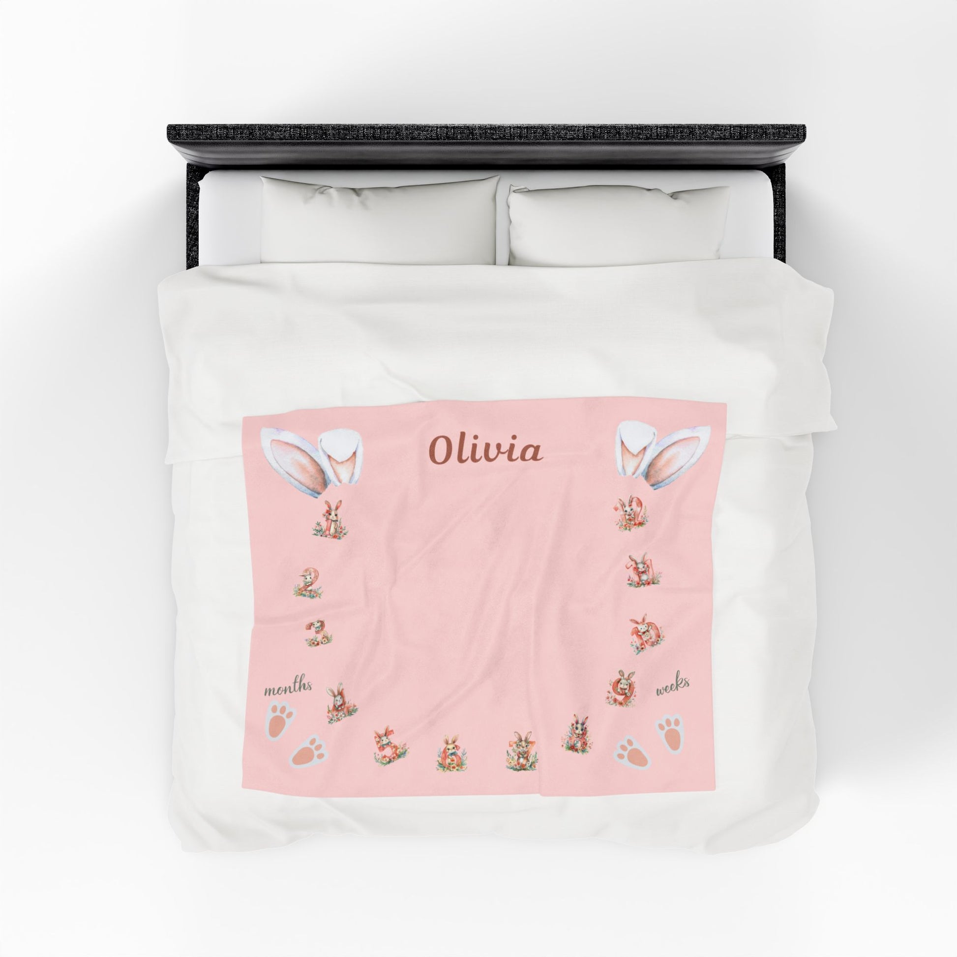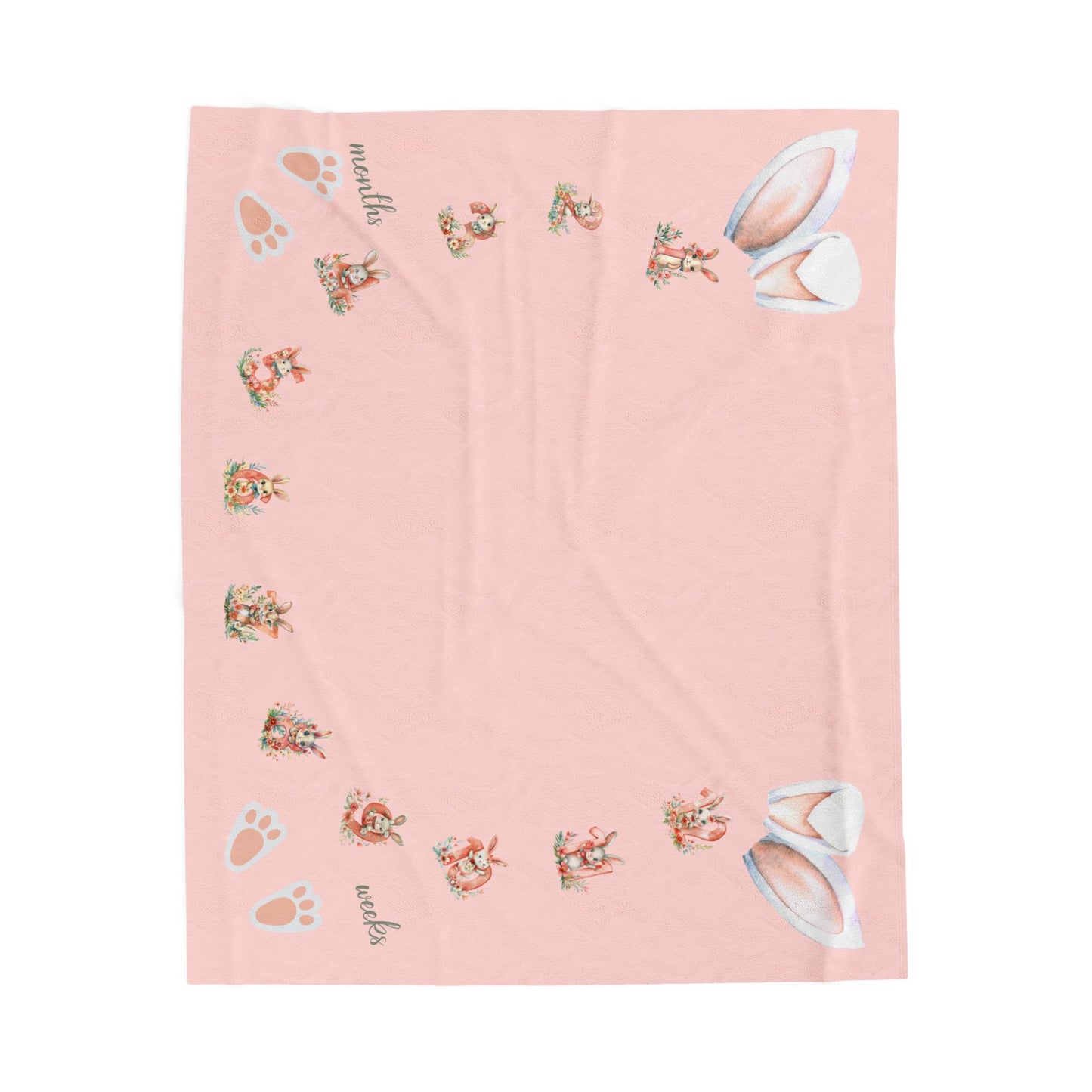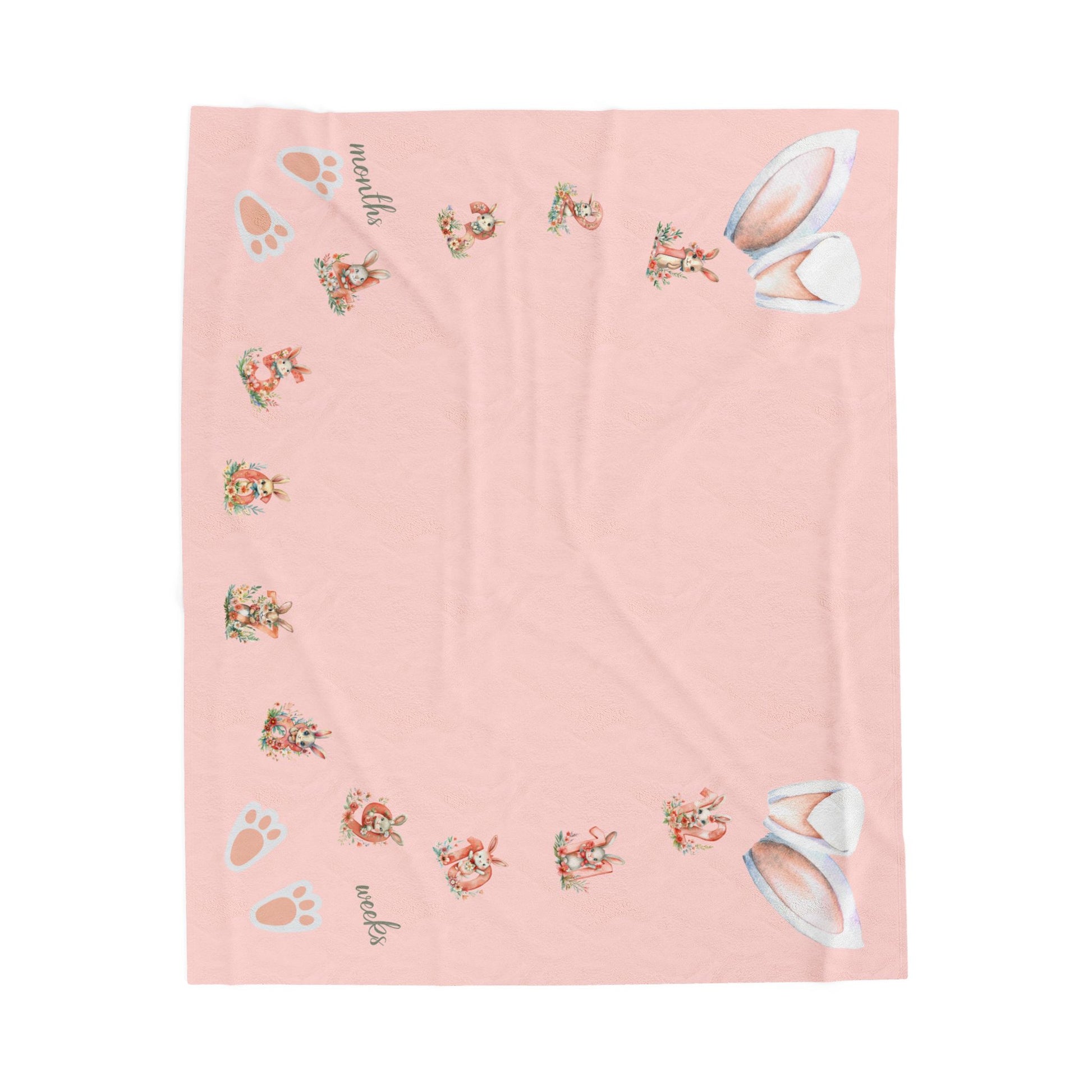 Personalized Bunny Milestone Baby Girl Blanket – Soft Velveteen Plush Fleece