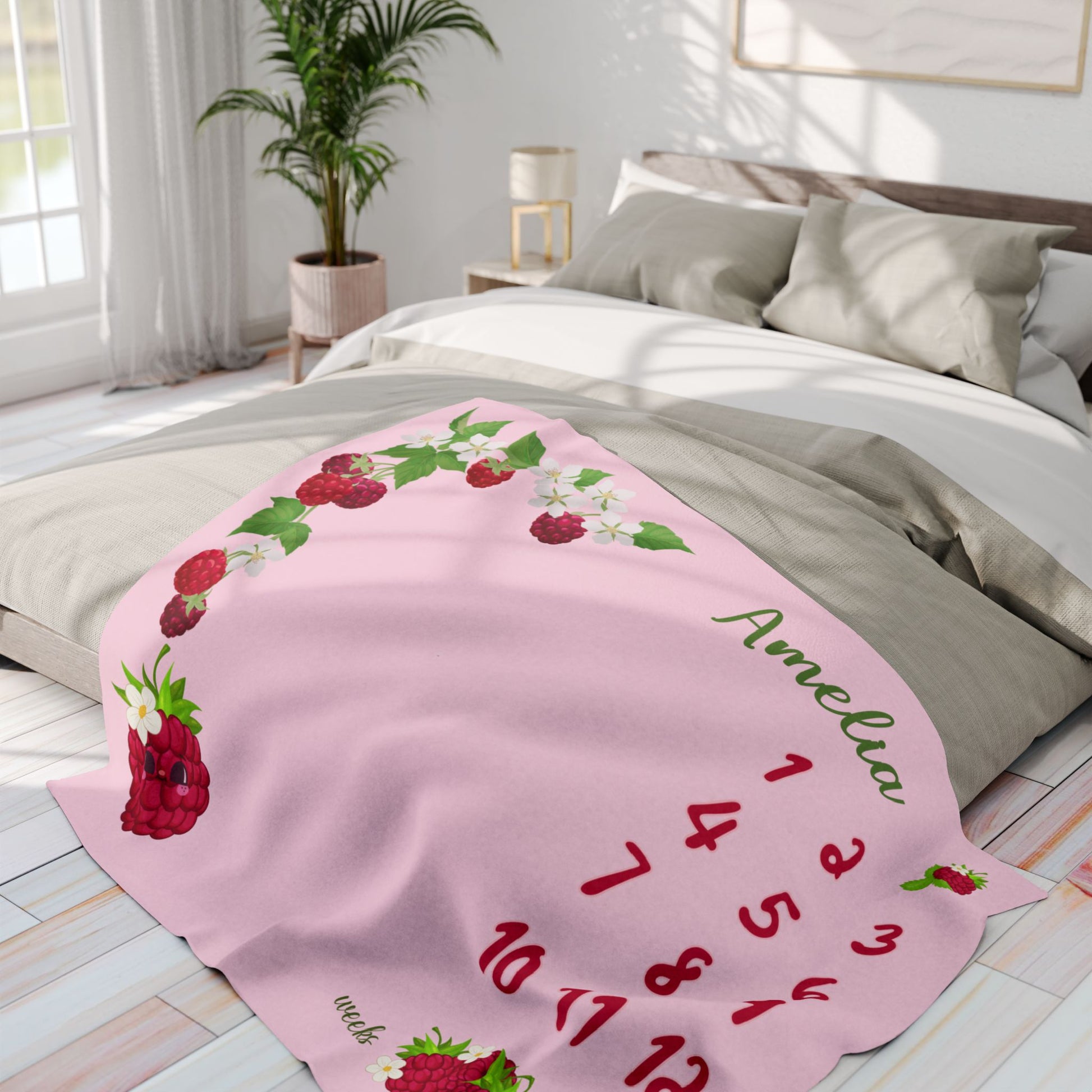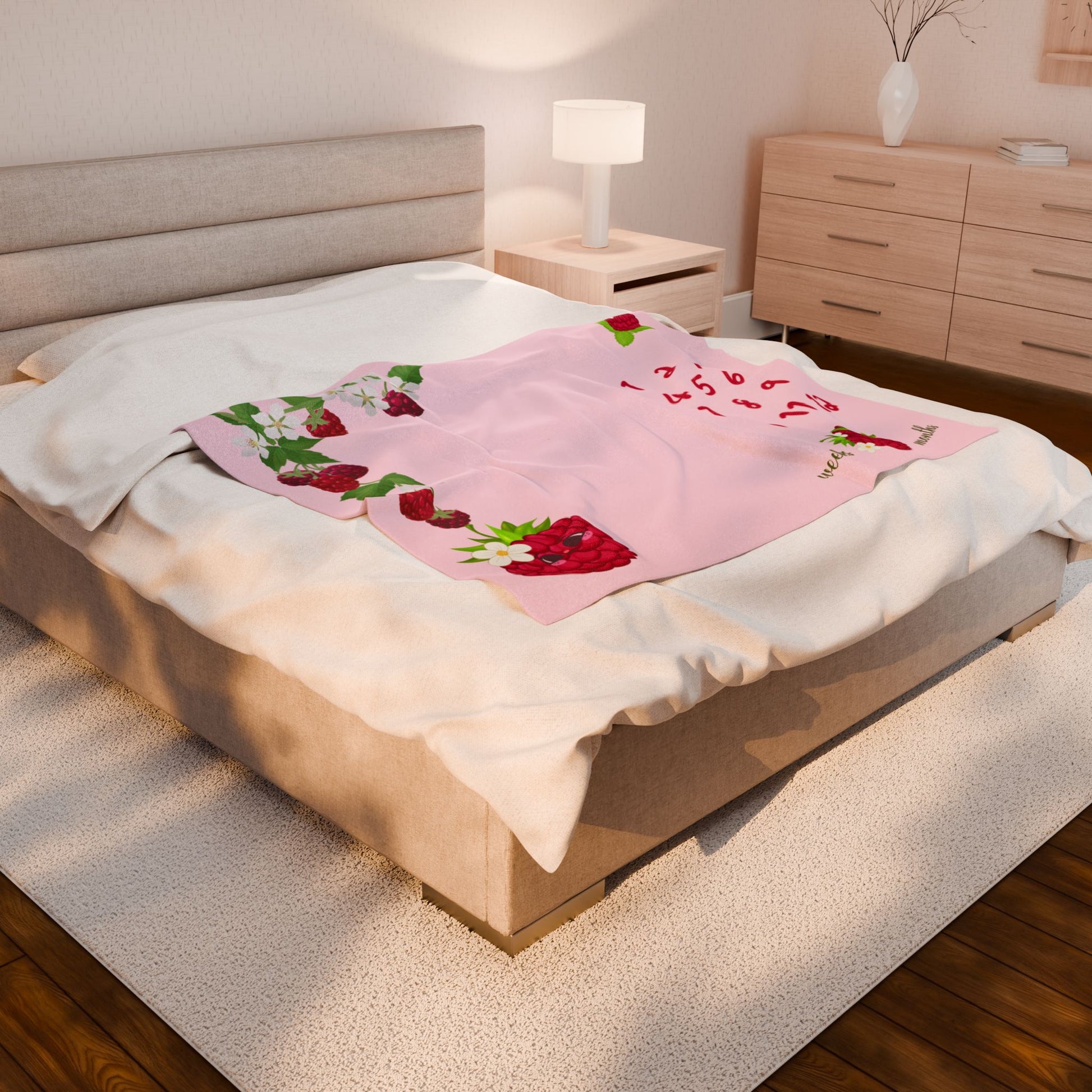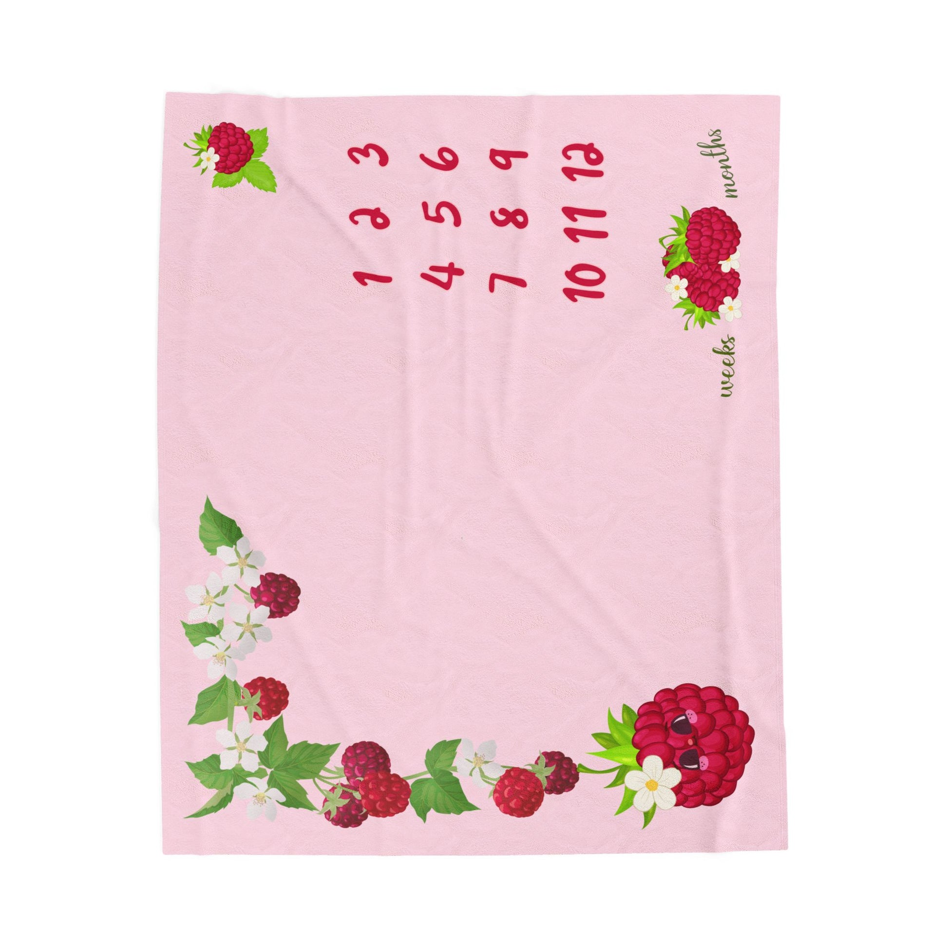 Personalized Raspberry Milestone Baby Blanket – Soft Velveteen Plush Fleece